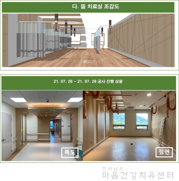 전라남도 마음건강치유센터 7월 리모델링 현황(2021.07.26~2021.07.28) 페이지 정보 작성자 wkujim132 작성일21-07-29 16:38 조회1,285회 댓글0건 관련링크 이전글 다음글 목록 본문 이전글 다음글 목록