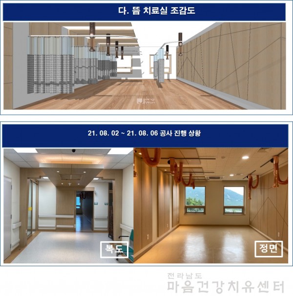 전라남도 마음건강치유센터 8월 리모델링 현황(21. 08. 02 ~ 21. 08. 06) 페이지 정보 작성자 wkujim132 작성일21-08-06 16:44 조회1,631회 댓글0건 관련링크 이전글 다음글 목록 본문 이전글 다음글 목록